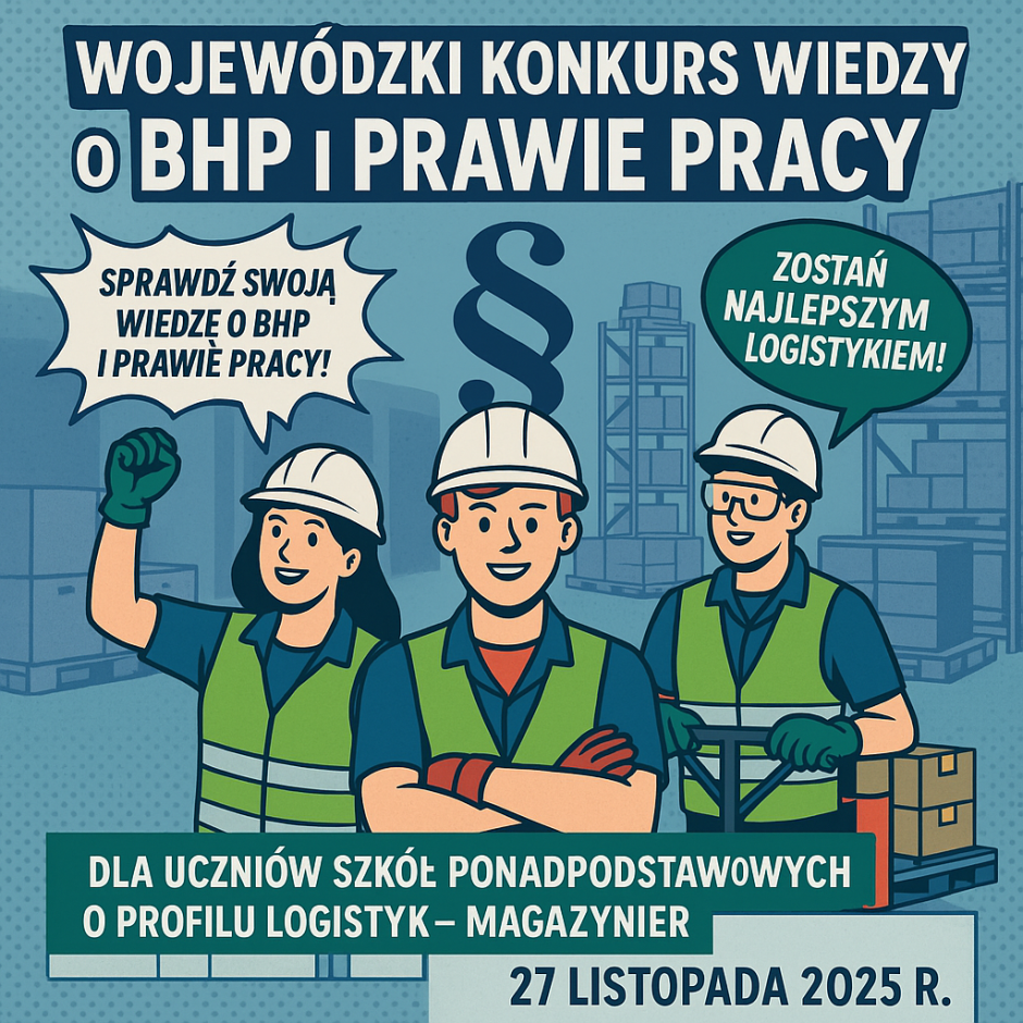 Okręgowy Inspektorat Pracy w Łodzi zaprasza uczniów szkół ponadpodstawowych kształcących się w zawodach logistyk i magazynier do udziału w konkursie wiedzy z zakresu bezpieczeństwa i higieny pracy, prawa pracy oraz zasad bezpiecznej pracy w branży logistyczno-magazynowej.