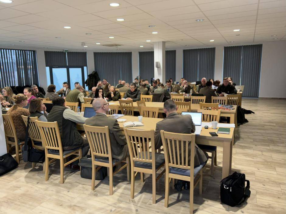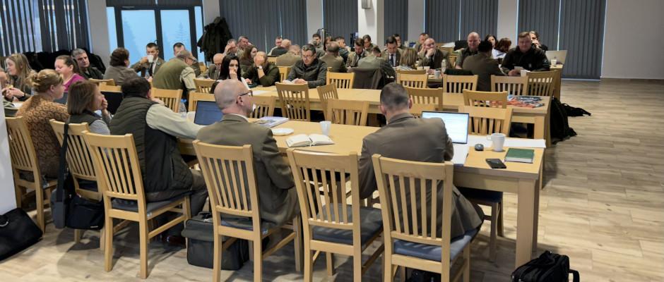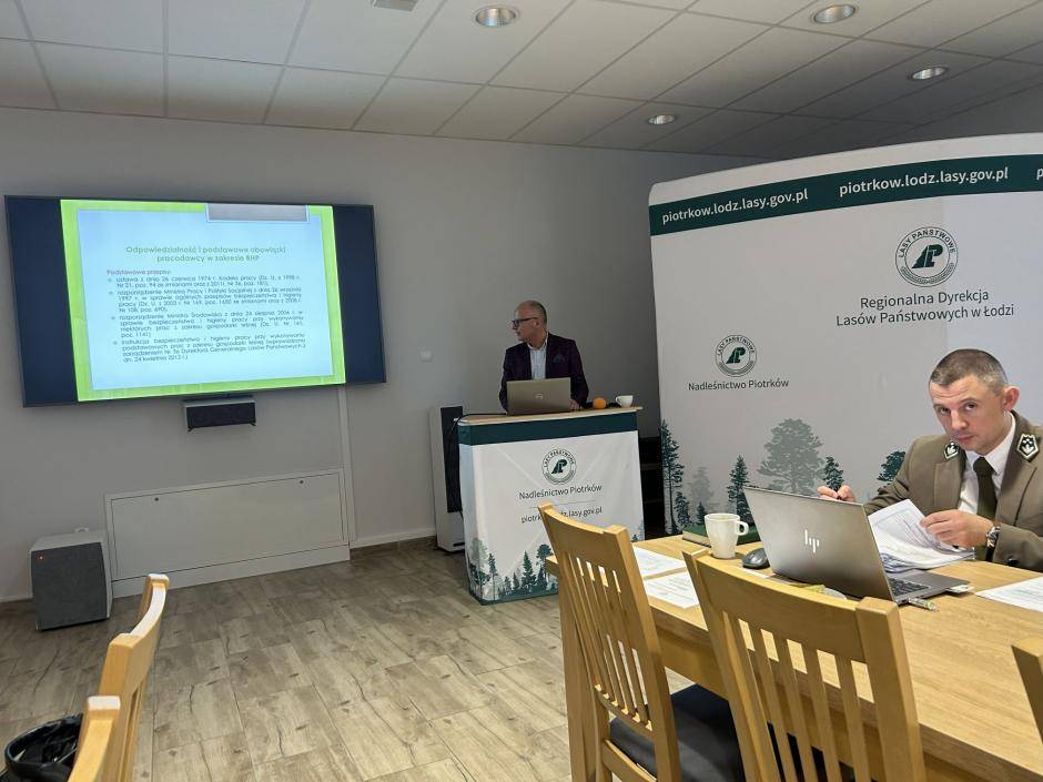W ramach spotkania nadinspektorzy pracy przeprowadzili szkolenie z zakresu prawnej ochrony pracy w tym bezpieczeństwa i higieny pracy ze szczególnym uwzględnieniem zagrożeń przy pracach leśnych.