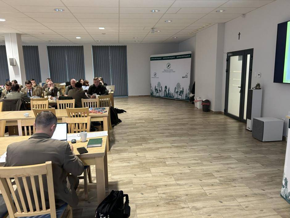 12.12.2025 r. w Ośrodku Rehabilitacji Zwierząt w Polichnie na wniosek Nadleśniczego Nadleśnictwa Piotrków dr. inż. Mateusza Garbacza, nadinspektorzy pracy Janusz Krupa i Piotr Michalik uczestniczyli w spotkaniu z pracownikami Nadleśnictwa Piotrków i zakładów usług leśnych.